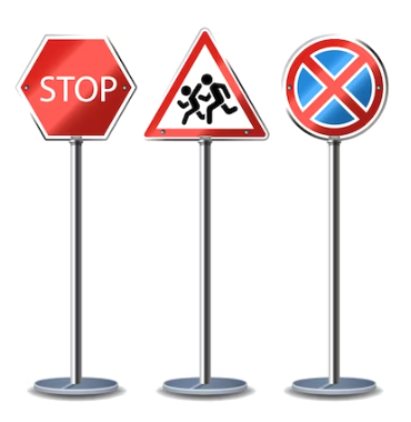 Look at the picture, Road Signs have different colours and shapes and there is obvious reasons behind them. Road Signs are means of communication to the road users to warn and guide them in advance. Roads Signs are vital when we talk about safety of all road users. In this module we will learn about categories of road signs along with their examples.