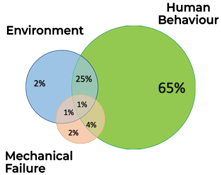 The diagram depicts that the human behaviour is highest contributing factor for road crashes.