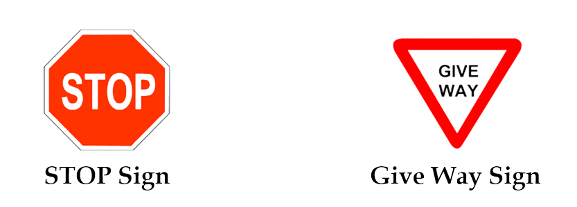 In addition to the three categories of mandatory signs, the two signs STOP and GIVE WAY signs also belongs to the category of mandatory signs and are also considered as Right of Way Signs. Violation of these signs is considered as an offence.