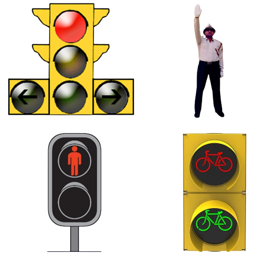 Traffic Signals may be present on urban roads, rural roads and highways etc. These are commonly referred to as traffic lights. In addition to traffic lights there are other mechanism by which it can be signalled to other drivers. These are hand signals which can be provided by drivers or traffic police personnel.