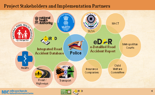 The iRAD application would facilitate collection & hosting of all the road accident data, collected in predefined format from accident location throughout the country in a centralized accident database. As per standard operating process currently followed in India, in case of any road accident, multiple stakeholders are associated. iRAD has customized interfaces for all the key stakeholders comprising Police, Transport, Road Owning Agencies and Medical & Health Department.