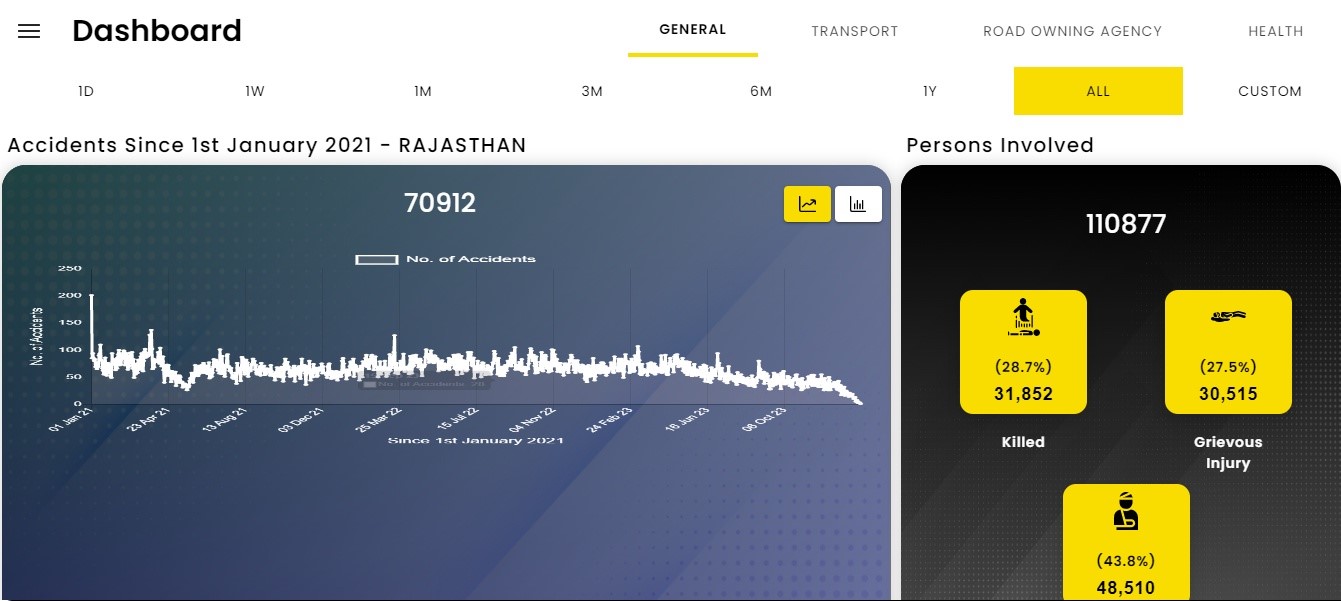 The main objective of the project is to enrich the accident databases from every part of the country. The project would generate various types of insights by analyzing the collected road accident data across the country through implementation of data analytics technique. The proposed system would represent the analysis output through Monitoring & Reporting Dashboard and Analytics Dashboard for easy understanding for forecasting helping higher authorities for decision making and policy formulation. The expected outcome of the project is to enhance road safety i.e., “Safe Roads for All” in India.