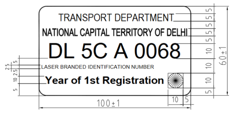The third registration plate is in the form of a self-destructive type chromium based hologram sticker of size of 100 x 60 mm that is affixed on the inner side of left hand corner of windshield of the vehicle. The sticker is a diffraction foil film with high reflective index that has chromium based hologram embedded. The details on the sticker include the following: